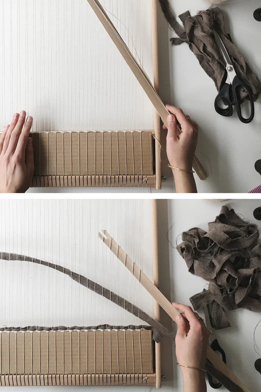 First make a loop knot at the end of your warp yarn, and fasten in to the top left peg. Rya knots create a fringe. Loop the warp from the top to the bottom of the loom in the desired section. Honestly, i found the hardest part about starting weaving was managing the tension. You really only need 1 of these essential weaving tools to start, but it is always useful to have at least 2 or 3 types if you find yourself really getting into the art of wall weaving.